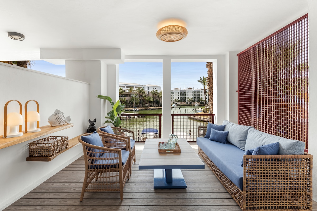 Este espacioso departamento de dos dormitorios totalmente renovado está ubicado en el puerto deportivo de Sotogrande, a pocos pasos de las playas. El dormitorio principal tiene una cama tamaño king y baño privado. La habitación ofrece dos camas individuales y baño privado. Amueblado con muebles nuevos, el apartamento incluye sábanas, toallas, wifi gratuito y acceso a servicios de streaming como Netflix. La sala de estar y el comedor se extienden a una terraza privada, completa con televisión y chimenea para un ambiente acogedor.