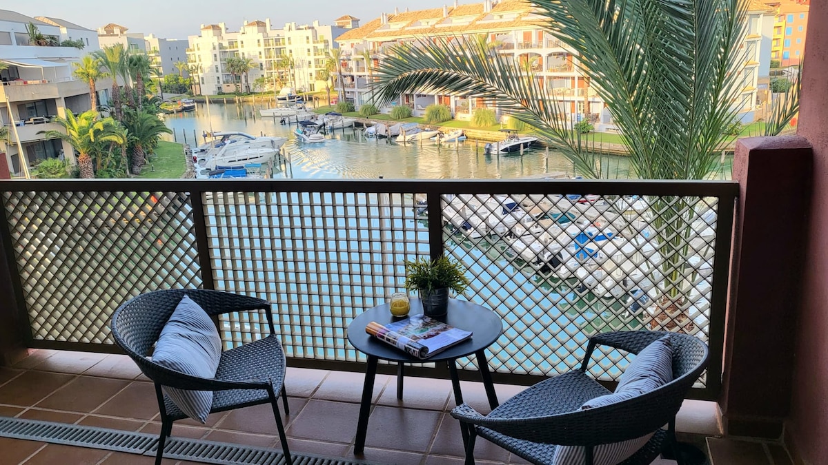Wake up to marina views in this bright, stylish 2-bed apartment in the heart of Sotogrande Port. Enjoy a large sunny terrace, fast Wifi for remote working, underground parking and a peaceful location near restaurants, cafes, tennis club, yacht club and the beach and with a communal pool. Also available are a travel cot and high chair at no extra cost (please reserve in plenty of time)