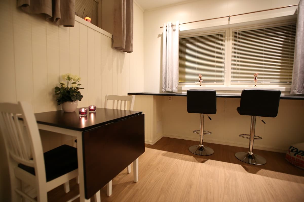 ¡Apartamento tipo estudio en el sótano! Buena ubicación para ver las auroras boreales en invierno. Cerca del centro de la ciudad, el centro de ballenas y el aeropuerto. Entrada privada, baño, cocina individual, cama (180) ¡Atención! ¡Altura del techo de 2 metros! El apartamento debe ser limpiado por el huésped. La ropa de cama se pone y se quita después de su uso. Cargo de 500 NOK por no usar la ropa de cama. La ayuda de limpieza se puede reservar a más tardar el día antes de irte. 500 NOK El techo del garaje del salón está cerrado entre el 1 de octubre y el 1 de junio. Se puede alquilar bajo petición fuera de este horario. 100 NOK adicionales por día en el alquiler.