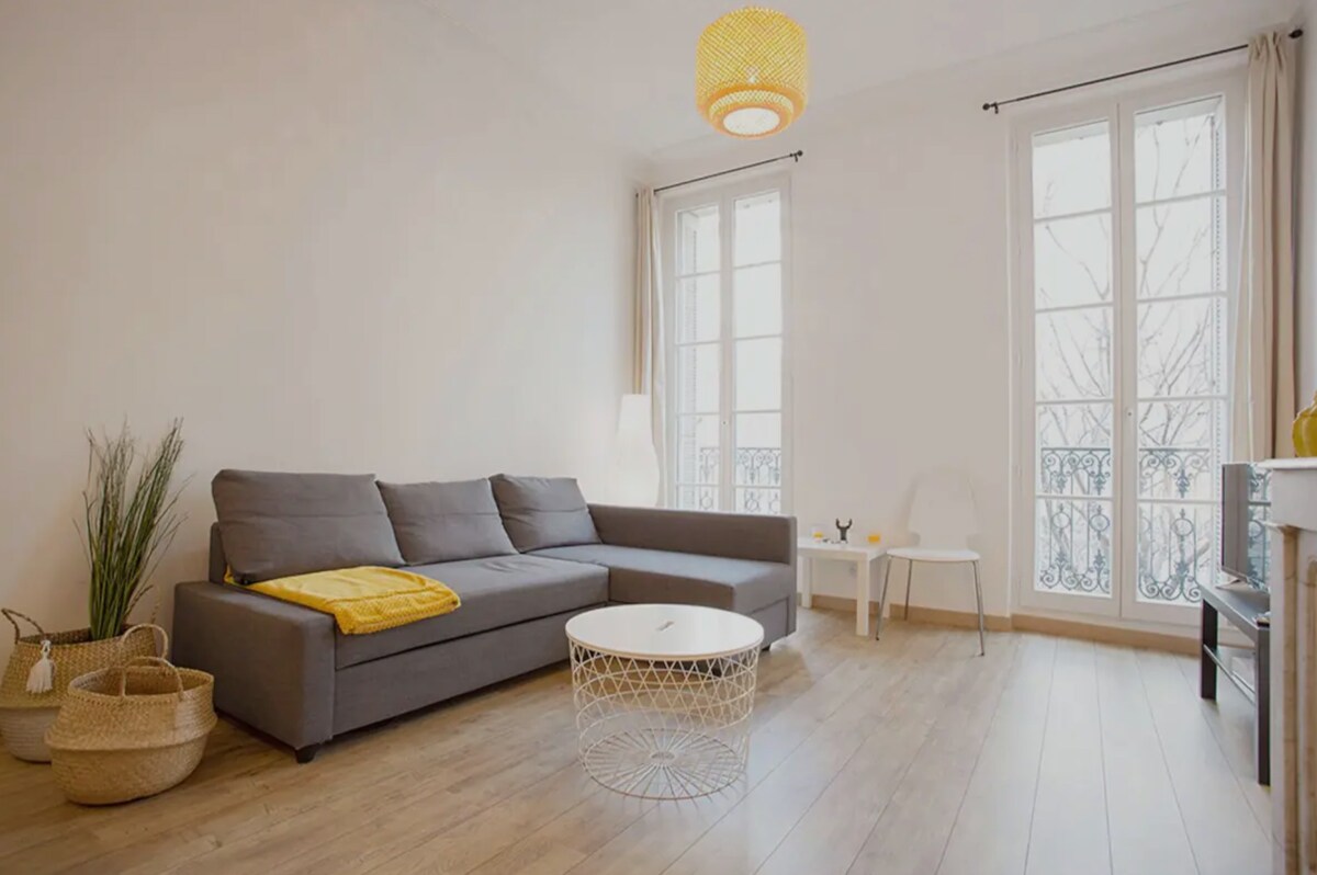 Apartamento T2 de 50 m2, en el segundo piso de un edificio antiguo en el corazón del centro de la ciudad, en zona peatonal, en Tolón. ¡Barrio animado y agradable, bares de vinos, restaurantes, tiendas y comercios, galerías, al pie del edificio! Consta de una hermosa sala de estar, sala de estar con 2 sofás (uno de ellos cama) y comedor, cocina equipada y un dormitorio grande (cama de 160 cm) con baño (bañera) y aseo. Estará a 10 minutos a pie de la estación de tren, a 2 minutos de los autobuses y barcos