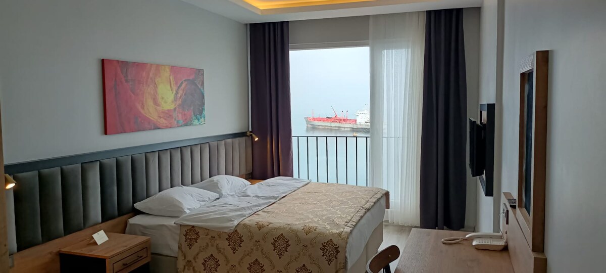 Ofrecemos una experiencia única a nuestros huéspedes con la vista perfecta al mar, donde casi te sentirás sobre el mar, junto a la playa. Con su ubicación, vista y facilidad de transporte, nuestras instalaciones de alojamiento son diferentes y especiales que todos los demás alojamientos en Trabzon. El desayuno, el internet, el estacionamiento y la limpieza diaria de la habitación son gratuitos y están incluidos en el precio de la habitación. Tenemos servicio de limpieza en seco para tu ropa, nuestro servicio de limpieza en seco está fuera del precio de la habitación, es una tarifa adicional.