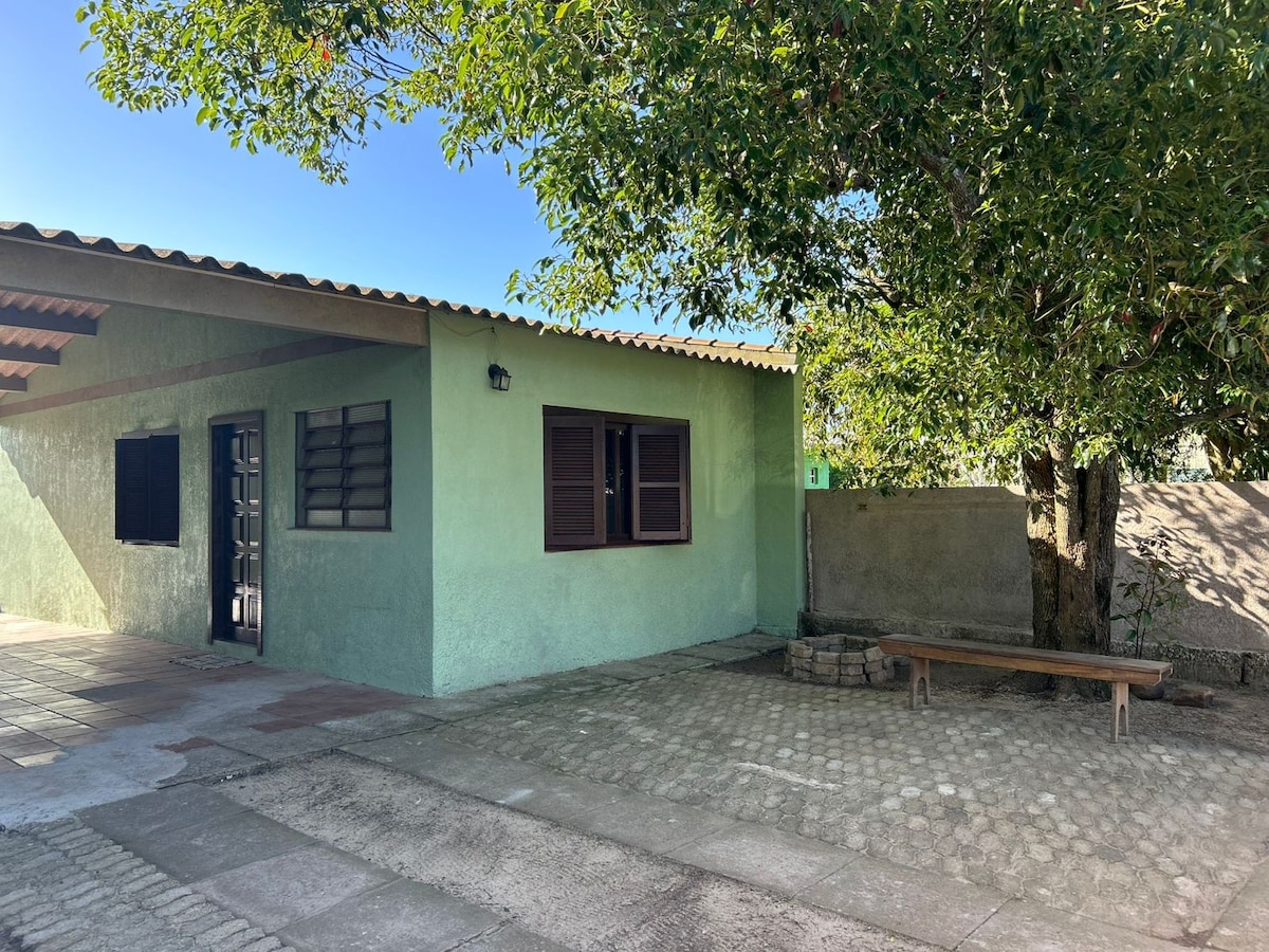 Casa entre centro e mar , com piscina e espaço para toda a família . Pertinho de mercado e conveniência. Ideal para relaxar e curtir a natureza . 🍃 🌳 🌲 Possui pátio fechado, piscina, sala e cozinha conceito aberto, dois quartos e um anexo para meditar ou relaxar ! A praia está aproximadamente 15min a pé, mercado, padaria e açougue em uma quadra ! Super bem localizado !!