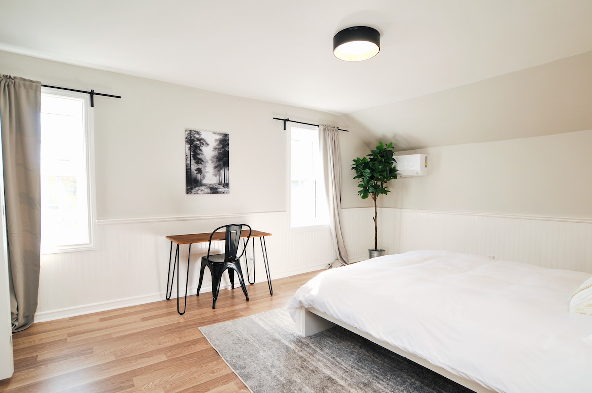 ¡Bienvenido al apartamento The Trail Retreat! Este apartamento recién reformado es ideal para relajarte y recargar las pilas con tu familia durante estancias cortas o largas en la ciudad, o para hacer una parada en tu camino al condado de Price Edward. Ubicado en una zona tranquila, nuestro apartamento de 2 dormitorios se encuentra a 3 minutos en coche (15 minutos a pie) del corazón del centro de la ciudad, Trenton & Trent Valley Lodge. Cuenta con aparcamiento gratuito en el hotel, TV inteligente de 50 pulgadas, lavandería privada y cocina totalmente equipada. A 20 minutos del parque Presqu'ile Prov Park y a 47 minutos de Sandbanks.
