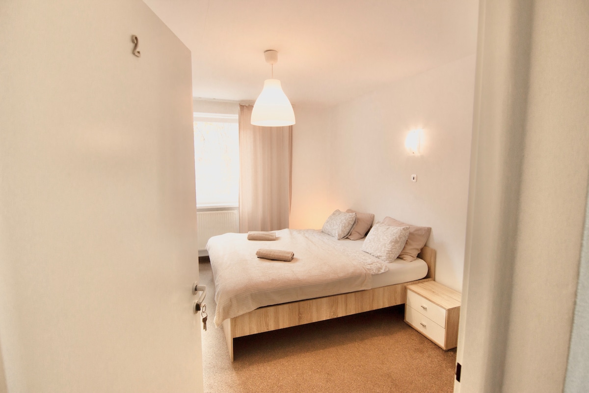 El apartamento está en una buena ubicación, está cerca de todo, a unos 10 minutos en coche del centro, del centro comercial, del aeropuerto o de actividades deportivas. La parada de transporte público está a 100m. En la zona hay aparcamiento para los huéspedes, la zona está asegurada por un sistema de cámara y un servicio de seguridad privado. El apartamento es amplio con una terraza de verano y un jardín ornamental. Totalmente equipado, WIFI disponible, TV vía satélite con 200 programas. Lavandería central. El personal conveniente es una cuestión, por supuesto.