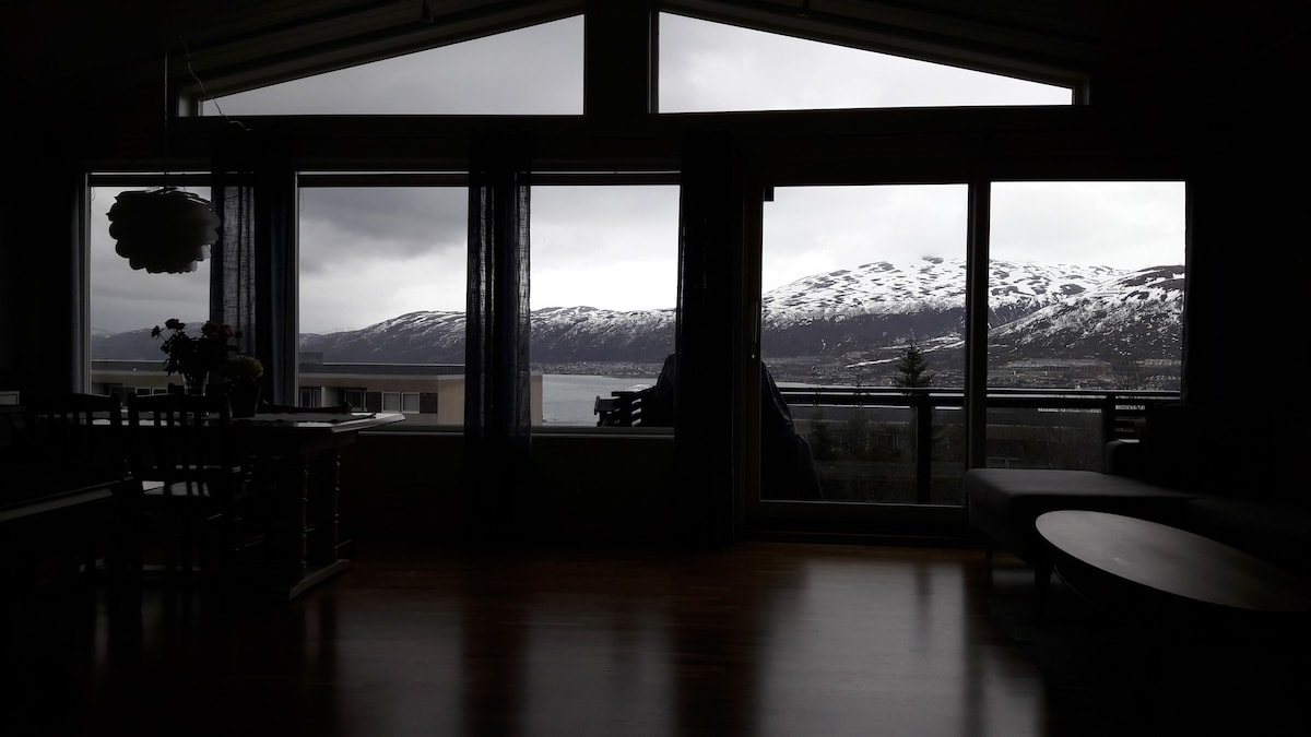 Alquilamos la planta baja de una casa en una zona residencial, a 15 minutos a pie del centro de la ciudad de Tromsø. Es una habitación estilo estudio con cama, cocina, lavavajillas, lavadora, wifi y artículos de primera necesidad. El baño es solo para huéspedes y tiene jacuzzi. Vistas al mar y a la montaña desde la ventana de la habitación.Si tienes suerte, también puedes ver las auroras boreales (septiembre-marzo). A 20 minutos en autobús urbano del aeropuerto. A 15 minutos a pie del centro Hay aparcamiento para 1 coche (tamaño de coche de pasajeros normal). Por favor, avísanos al reservar si necesitas aparcamiento. En invierno, puedes usar la plaza de aparcamiento si aceptas palear la nieve. Los niños pequeños están en el piso superior, por lo que puede ser un poco animado.Si lo sabes, envíame un mensaje. 29.07.25 actualizado Fotos renovadas Incluye sofá y jacuzzi Sin embargo, el mobiliario puede cambiar.