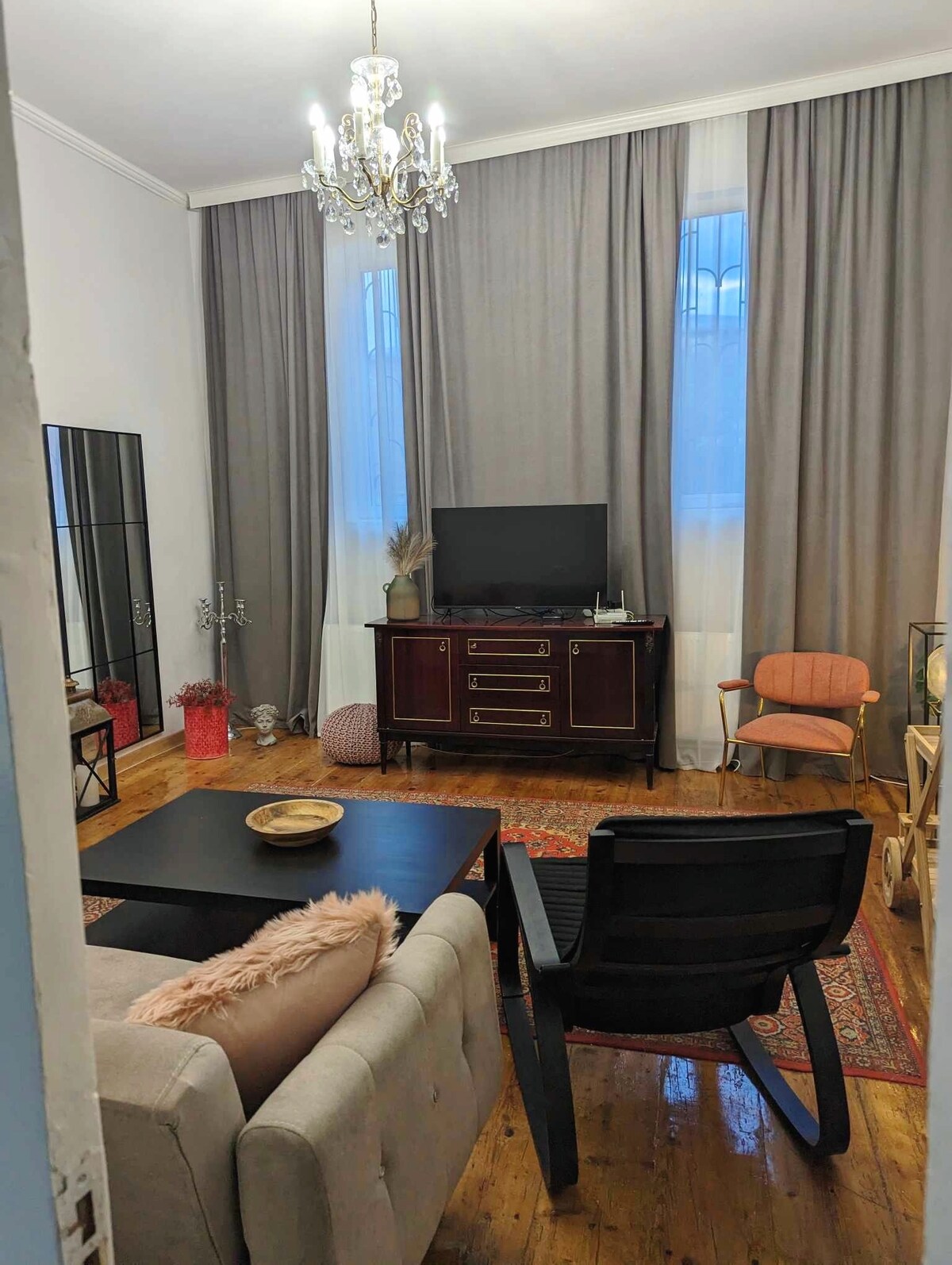 Hemos puesto nuestro corazón y alma en la creación de tu lugar feliz en Kutaisi. ¡Bienvenido! Disfruta de una casa recién reformada y cómoda, a solo 500 metros de la plaza central. La casa está totalmente equipada y estamos especialmente orgullosos del jardín verde con un acogedor cenador y mucha vegetación. El área del patio es de aproximadamente 300 metros cuadrados. Hay dos salas de estar y una chimenea en el patio. Dos de mis casas están ubicadas en el patio. Ambas tienen entradas individuales. Y el espacio del patio es común.
