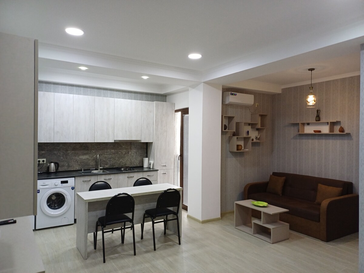 Este espacio único se encuentra en el corazón del casco antiguo de Kutaisi, a solo unos pasos del centro de la ciudad. Su diseño moderno y su amplia lista de comodidades satisfarán todas tus necesidades: 2 cómodas camas tamaño queen, toallas y sábanas frescas, un acogedor sofá con almohadas, una cocina totalmente equipada para cocinar, una televisión inteligente, wifi de alta velocidad, aire acondicionado, una lavadora y café y té de cortesía. Así que relájate, desconecta y siéntete como en casa🏠 🚭 No se puede fumar en interiores 🐾 No se admiten mascotas.