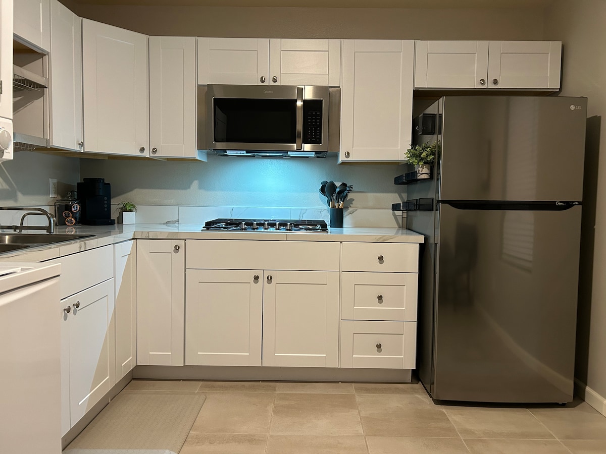 Alójate en nuestra moderna suite de invitados en Visalia, a solo 40 minutos de la entrada del Parque Nacional Sequoia y a pocas manzanas del centro de la ciudad. Tiene capacidad para 3 huéspedes, por lo que es ideal para familias pequeñas, parejas o personas que viajan solas. Cuenta con una cama tamaño «king», una cama individual plegable opcional (bajo petición) ideal para niños o adultos más pequeños, una acogedora sala de estar, una cocina pequeña, un espacio de trabajo dedicado con wifi de alta velocidad y una ducha a ras de suelo. En un barrio seguro cerca de un parque pintoresco con senderos, la base perfecta para aventuras en Sequoia.
