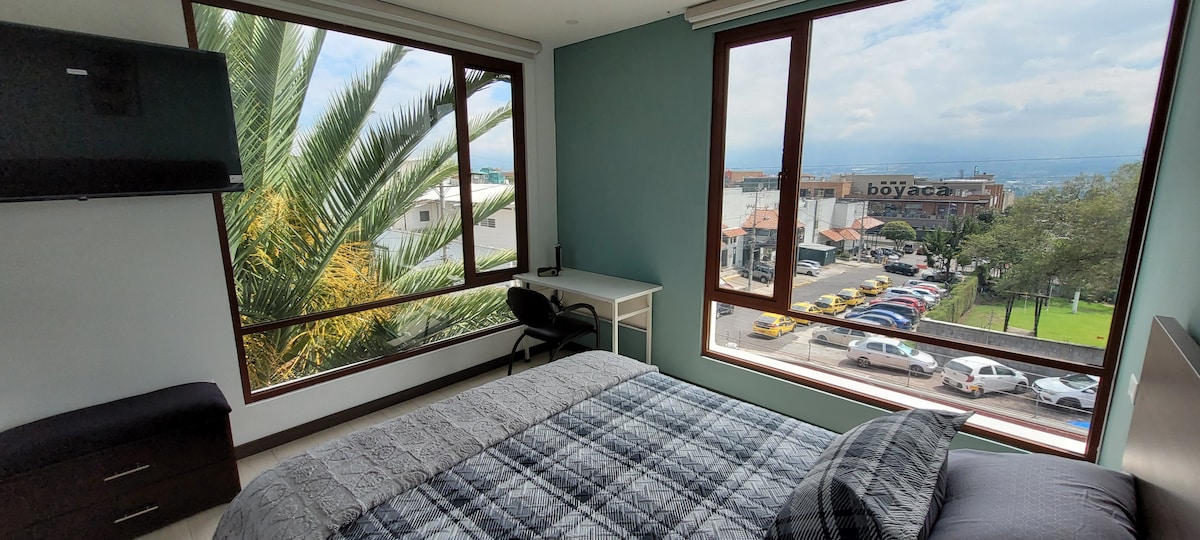 Ubicado en Tumbaco a 18 minutos del aeropuerto, Nuestro Estudio te encantará, es elegante, confortable con una hermosa vista a Quito y sus hermosas montañas. Encontrarás lo que necesitas tanto en la cocina como en el baño. Se encuentra ubicado en el segundo piso ( es importante mencionar que el edificio no tiene ascensor). Tendrás a tu disposición parqueadero seguro. Podrás visitar la zona de huerto 1500m2 con varios tipos de árboles y el jardín frontal. Bienvenidos a este lugarcito encantador!