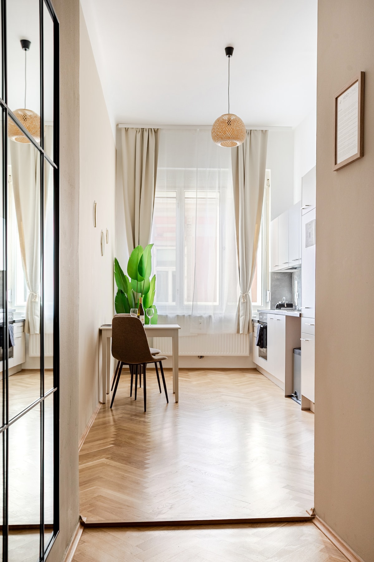 ¡Siéntete como en casa! El alojamiento ideal para ti, ya sea por trabajo, para asistir a eventos o para hacer una escapada con tus seres queridos. El apartamento de estilo antiguo, decorado con mucho cariño, te envolverá con su encanto desde el primer momento. Con atención al detalle, se ha tenido en cuenta todo lo que necesitas durante tu estancia. Además de la cocina totalmente equipada, la gran sala de estar y un moderno espacio de trabajo (wifi de alta velocidad), el apartamento te ofrece un gran baño con lavadora-secadora.