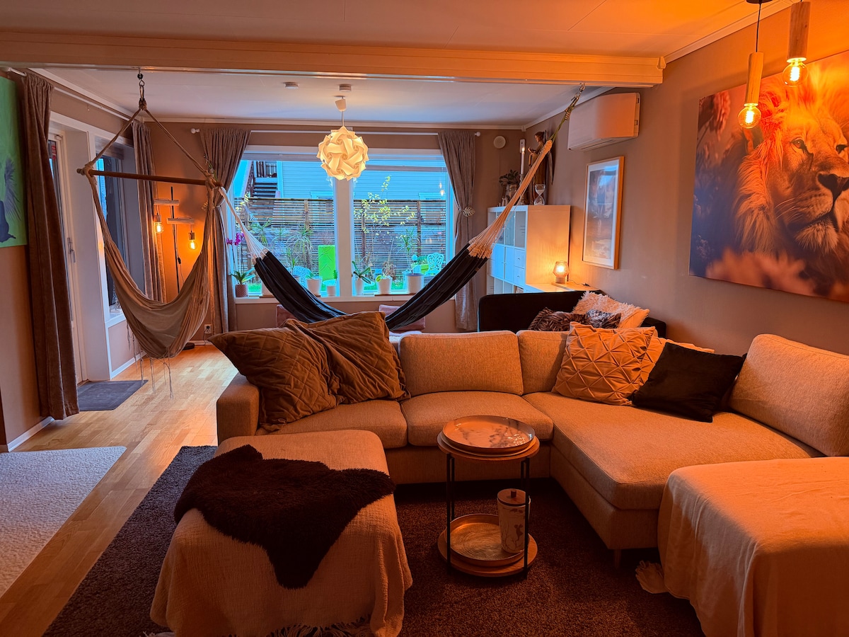 El apartamento está a 400 metros de distancia del centro de Jessheim y de la estación de tren. Duerme cómodamente para parejas. - Heims con espacio para 2 personas. - Sofá cama para una persona. - Cocina privada para cocinar. - Hermosa terraza con jardín. -3 minutos a pie de la parada de autobús (al aeropuerto) - Aparcamiento gratuito para 1 coche. - La ropa de cama y las toallas están incluidas. - No es un lugar para fiestas o reuniones. Hora de entrada: a partir de las 15:00 h. Hora de salida: 11:00 a. m. ¡Te damos la bienvenida!