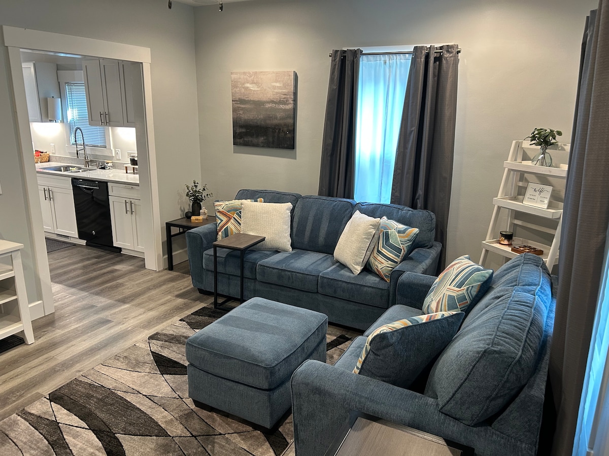 Amplia casa de dos niveles con un espacio habitable de concepto abierto perfecto para pequeñas reuniones y familias. Junto al comedor hay una terraza extragrande con parrilla, un gran patio trasero vallado y un pozo de fuego para tu disfrute. El estudio del sótano ofrece una gran TV de 60 pulgadas con Amazon Video. Hay tiendas de comestibles, restaurantes y mucho más cerca. También hay lavandería disponible. *Por favor, pregunta si estás interesado en una estancia más larga, es posible que tengamos disponibilidad que no aparece en el calendario.
