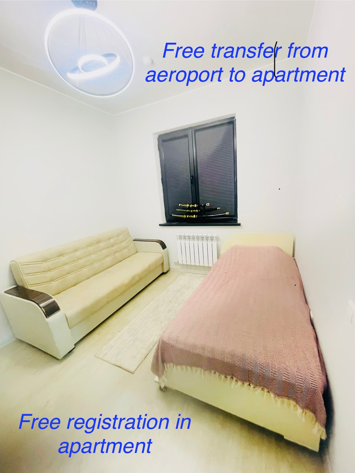 Что вас ждёт: • Уютная спальня с комфортной кроватью и большим шкафом • Просторная гостиная с мягким ковром и рабочим столом • Балкон с цветами и потрясающим панорамным видом на город • Современный ремонт, спокойная атмосфера и приятное освещение 📍 Идеальное расположение: Квартира находится в новом жилом комплексе, рядом с магазинами, кафе, остановками транспорта. Удобный доступ к основным достопримечательностям и города. 🚿 Wi-Fi | 🛏 Чистое постельное | 🌇 Вид с высоты | 🔒 Безопасный