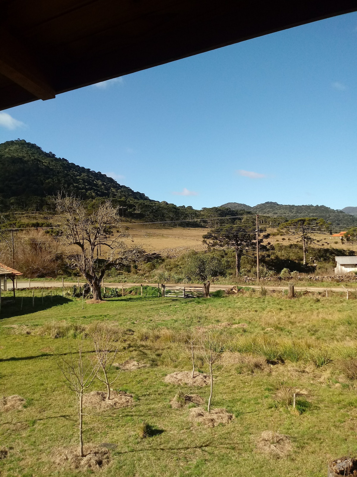 Si te alojas, puedes disfrutar de esa manta o chimenea incluso en verano, pero si no te gusta mucho el frío, tampoco hay problema, tenemos una estufa de leña. Debido a su ubicación a 550 m de altitud tenemos nieve, tiene día caliente, y la noche temperatura baja, normalmente 17° C en verano. Además de este privilegio, respiras aire puro, tienes contacto con la naturaleza y los animales. Está a solo 17 km del centro de Urubici. A 15 minutos en coche por carretera asfaltada. El agua es de fuente natural La leña tiene un costo aparte.