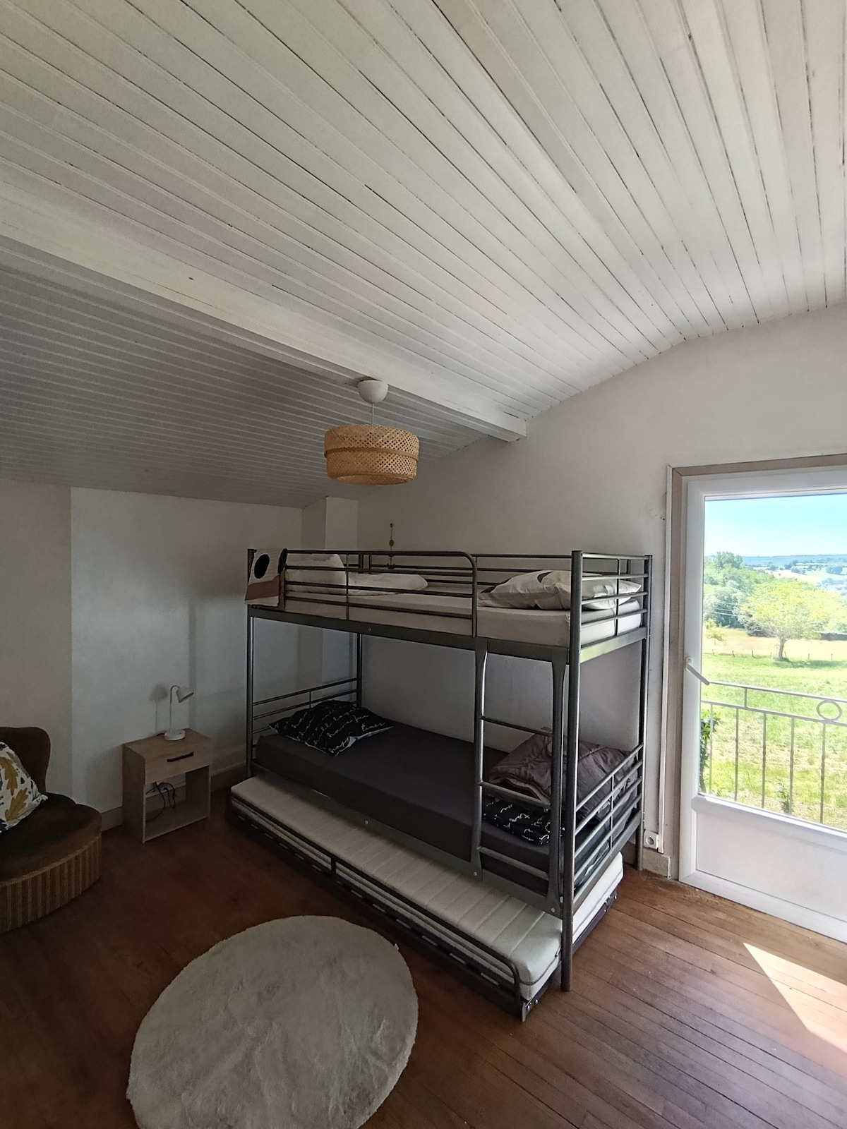 Casa rural con encanto en casa Périgourdine renovada de 79 m2, sala de estar de 40 m2 con cocina abierta totalmente equipada, sala de estar, sala de estar. Terraza de 40 m2 con vistas despejadas al valle. No hay vecinos , tranquilo en el campo, parcela no vallada con acceso privado y plaza de aparcamiento.