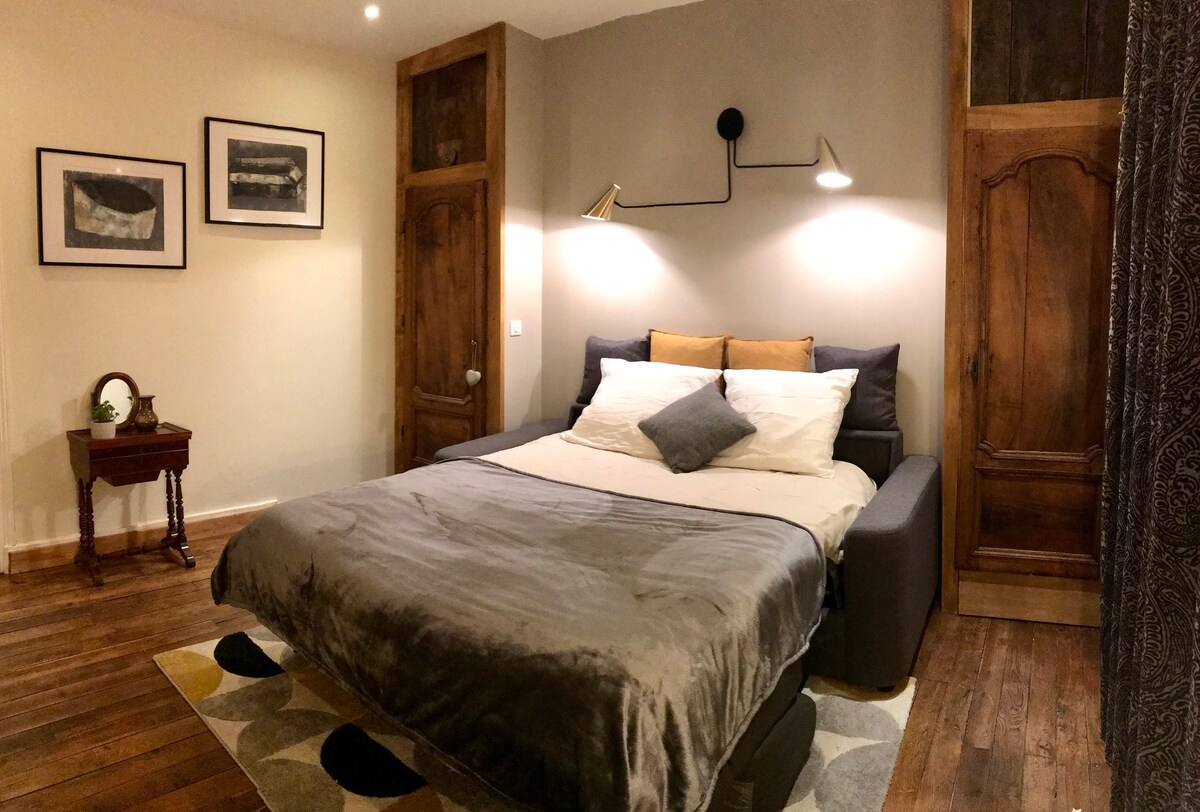 Gran estudio renovado equipado en el Corazón Histórico Disponible dentro de la vivienda: - Ropa de cama y toallas - Productos de bienvenida: té, café, magdalenas, gel de ducha - Wifi de fibra - Smart TV - Lavadora/secadora - Lavavajillas - Horno microondas con grill - Placa de inducción - Cafetera Senseo - Hervidor de agua - Frigorífico - Minivestidor Opcional: - Desayuno en el restaurante Chez Rosette 8 €/persona - Salida tardía 13:00/suplemento 10 € Llegada autónoma a partir de las 16:00 y salida antes de las 11:00