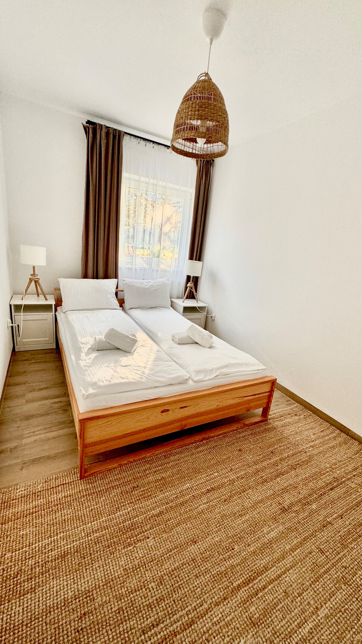 Apartament na skraju lasu, gdzie codzienność zatrzymuje się na chwilę, a morze szepcze swe tajemnice. Przytulny salon z kanapą, sypialnia z dwoma łóżkami, kuchnia, w której przygotujesz to, na co masz ochotę. Kilka kroków dzieli Cię od leśnych ścieżek, gdzie cisza układa myśli. Z dala od hałasu, promenad i straganów – idealne miejsce na chwilę wyciszenia. Tu poranki smakują świeżym powietrzem, a wieczory pachną spokojem. Przestrzeń, w której można na nowo poczuć radość z bycia blisko natury.