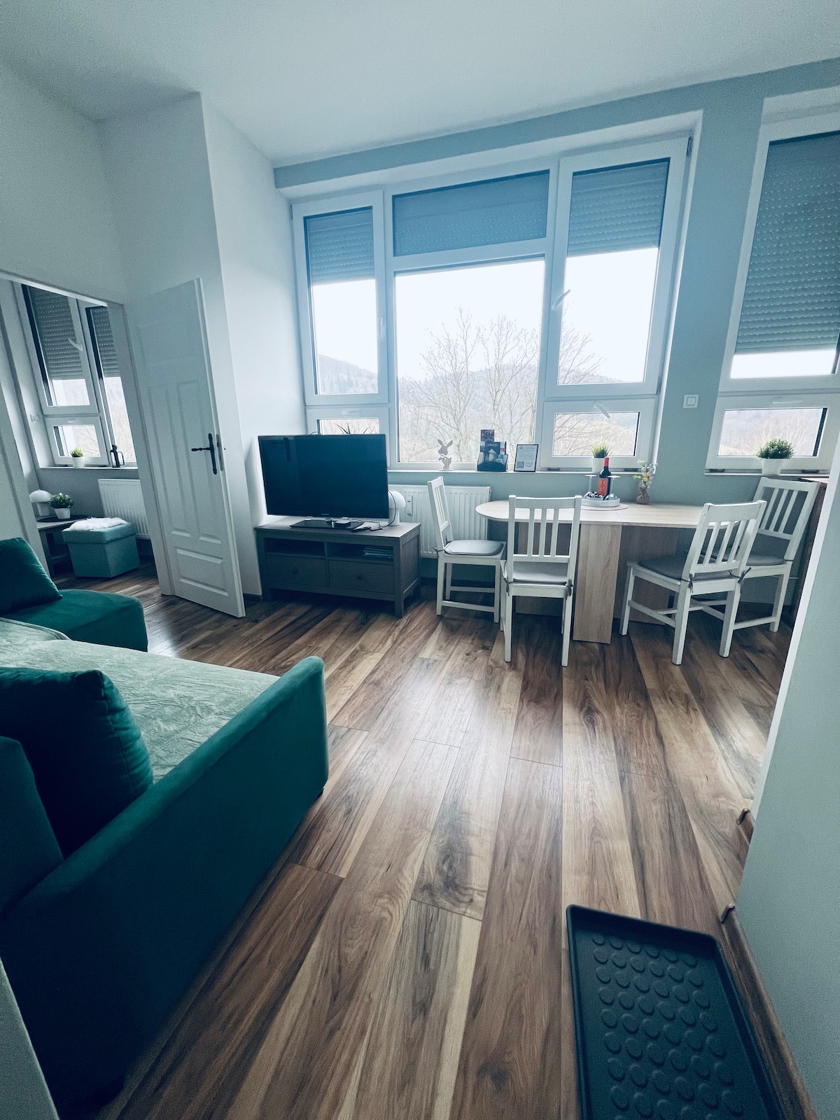 Rodzinny Apartament przy Równicy 2 w Ustroniu 29m2 dla par, rodzin 2+0, 2+1, 2+2. Uwaga brak możliwości wynajmu 3,4 osobom dorosłym. Apartament położony w lesie, na stoku góry. Oferuje przepiękne widoki, odpoczynek i wyciszenie. Idealna baza na spacery, wędrówki, bieganie, rower. Apartament posiada aneks kuchenny, łazienkę,sypialnie, salon. Tv Smart, WiFi (telewizja, Platformy filmowe) W pokoju znajduje się rozkładana sofa 140x200, a sypialni łóżko 140x200 Zapewniamy ręczniki, pościel.