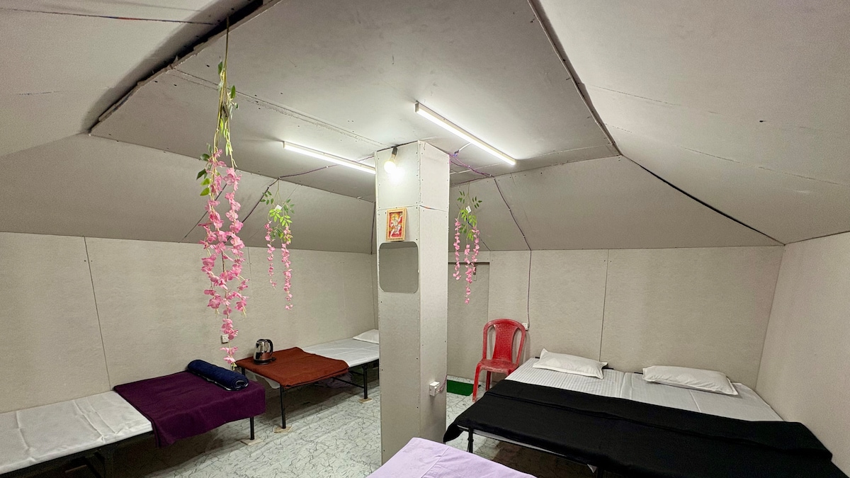Triveni Awas ofrece una estancia serena y lujosa, a solo 300 metros del divino Triveni Sangam y a 50 metros de Sangam Snan Ghat. Empápate del ambiente espiritual mientras disfrutas de las comodidades modernas. Nuestra tienda de campaña bellamente diseñada combina la naturaleza con la elegancia, lo que garantiza una experiencia inolvidable por la confluencia sagrada de Ganga, Yamuna y Saraswati. “! ! ! ! ! ! ! ! ! ! ! ! ¡Descubre la tranquilidad y el patrimonio en Triveni Awas!