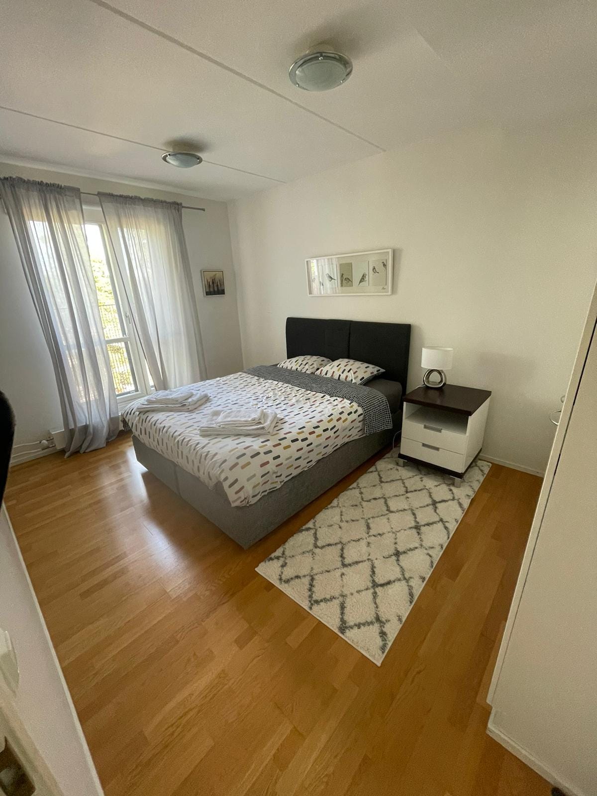 Siéntete como en casa en este moderno apartamento con capacidad de hasta 6 personas Podrás disfrutar de: + Una bonita remodelada cocina, sala, amplio baño también remodelado y balcón amoblado donde se ve el atardecer + Lavavajillas / Lavadora / 2 habitaciones / 3 camas dobles + A poca distancia del metro, supermercados y varios restaurantes + Aparcamiento gratuito + Cortinas oscuras, TV, closets, escritorio y barrio tranquilo Podemos aconsejarte qué hacer en la ciudad. Café y té de cortesía :)