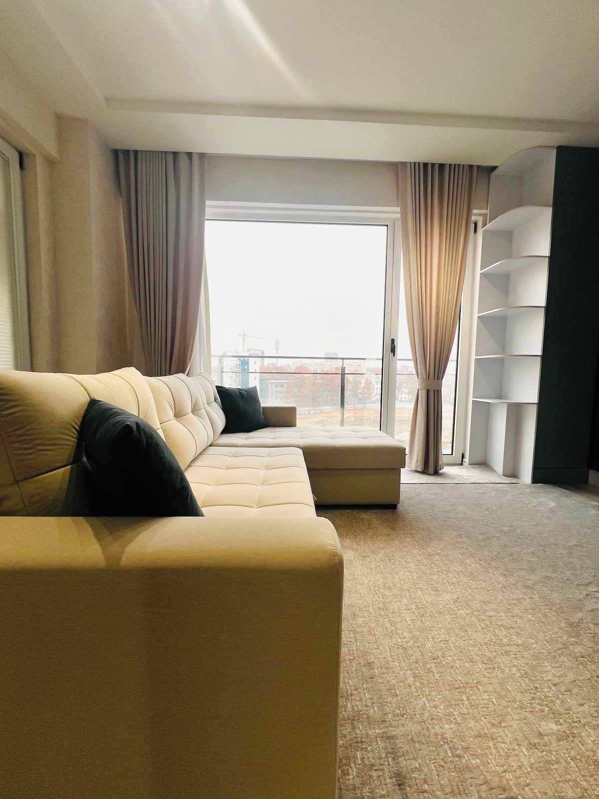Un refugio refinado donde el estilo se une a la comodidad. Las ventanas del suelo al techo iluminan el interior de inspiración escandinava, con muebles elegantes y una cocina totalmente equipada. Los huéspedes disfrutan de wifi de alta velocidad, aparcamiento seguro, un moderno gimnasio y una terraza en la azotea con impresionantes vistas a la ciudad. Ubicado en la prestigiosa U-Tower, con fácil acceso al centro de la ciudad, ofrece una experiencia de vida verdaderamente elevada.