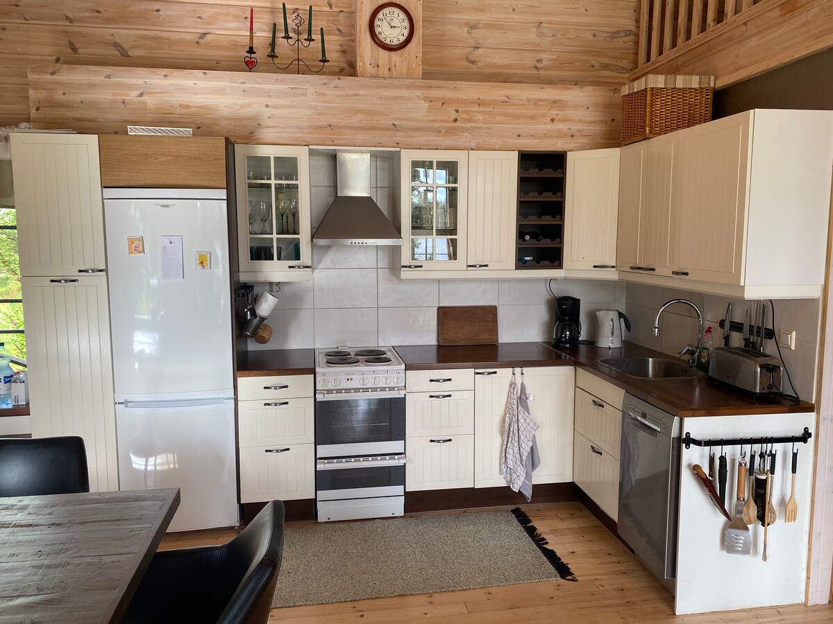 Casa nueva cerca del lago. Lugar tranquilo. A 25 minutos de Oulu. Parada de autobús a 500 m. Cocina, salón, 2 dormitorios, sauna, baño. Posibilidad de esquiar o caminar en el lago o el bosque. Máximo 4 personas. Jacuzzi +50e/día (límite -20c). Mínimo 2 días. Se puede recoger en Oulu o Kiiminki. 4 juegos de esquís de fondo y raquetas de nieve de uso gratuito. Puedo organizar trineos de husky, caza de Aurora y otras actividades de invierno. Ei juhlia, máx. 4 vierasta. Oulu a 25 min Rovaniemi 2,5 h