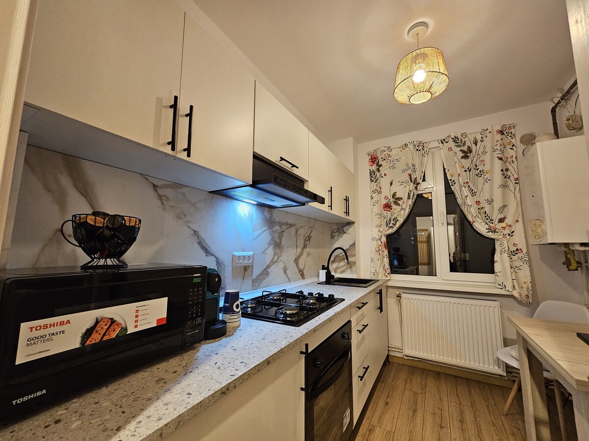 Disfruta de una experiencia elegante en esta casa ubicada en el centro de Piatra-Neamt,estando en las inmediaciones de las principales atracciones turísticas (Museo de Historia, patio de Domneasca, telecabina,etc.) a 36 km del monasterio de Varatec, a 42 km del monasterio de Agapia, a 46 km de la fortaleza de Neamt, al aeropuerto internacional de Bacau a 63 km. Este apartamento con aire acondicionado ofrece a los huéspedes 1 dormitorio, TV inteligente, lavadora, comedor y cocina totalmente equipada.