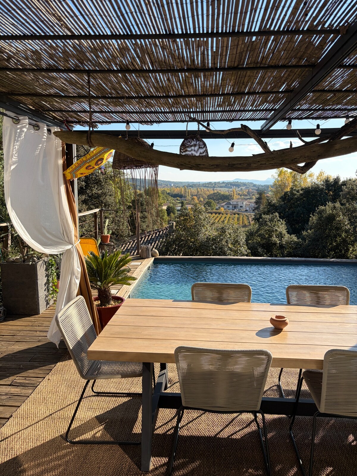 Bienvenido a mi casa, en el corazón de las Cevenas, en un antiguo granero luminoso con sus impresionantes vistas de las Cevenas, Diseñada por un arquitecto, mi pequeña casa está a dos pasos de las rutas de senderismo, pero también a 15 minutos de Barjac (mercado los viernes por la mañana) y a 25 minutos de Uzès (mercado los sábados, mercadillo los domingos). Es como mis intereses: viajes, senderismo, fotografías... Venga a reponer energías. Encontrará tranquilidad, sol y un universo de viajes.