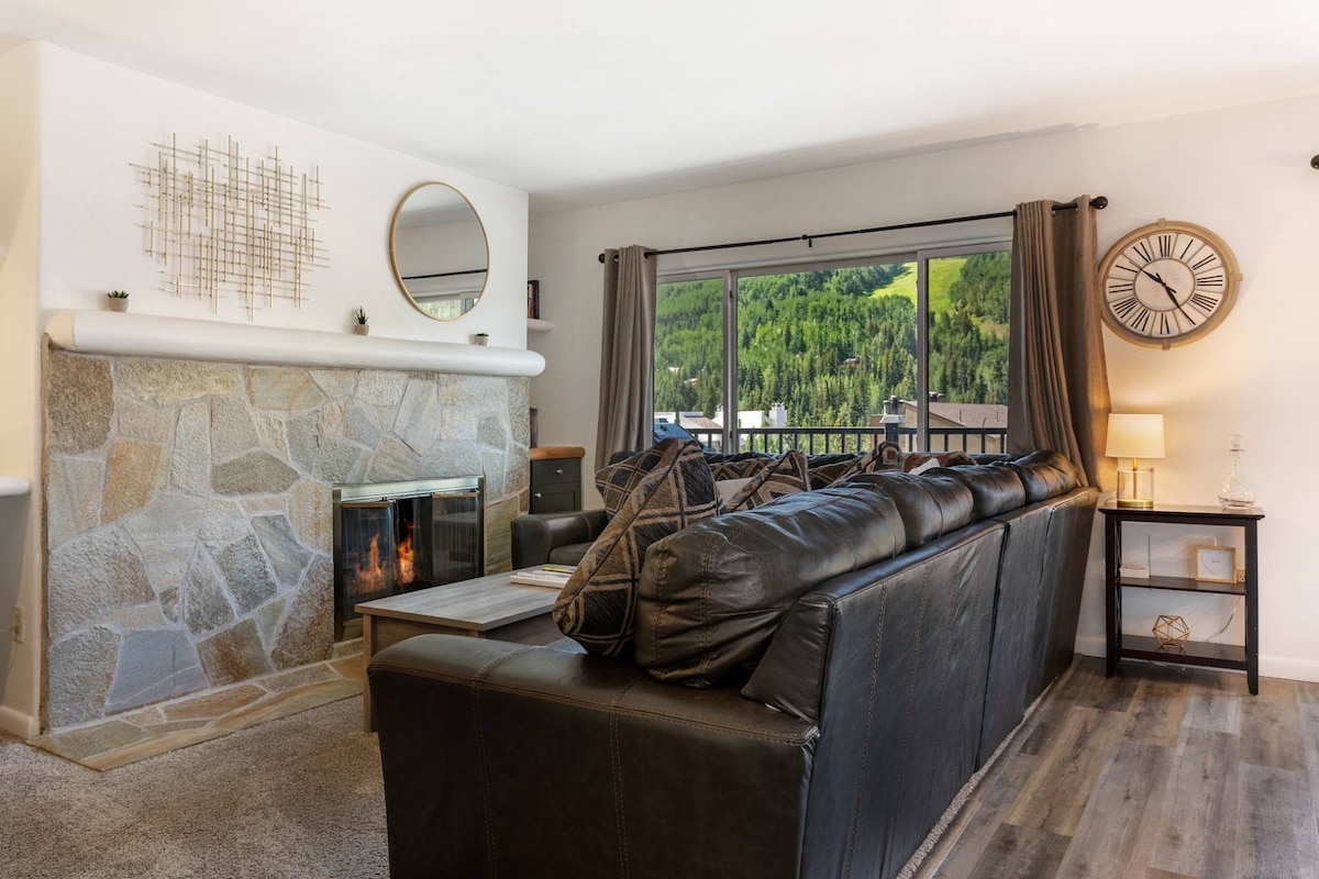 Increíbles vistas sin obstáculos de la montaña Vail en este espacioso apartamento de dos dormitorios con un moderno estilo de montaña. Los techos abovedados con ventanas panorámicas permiten que el famoso sol de Colorado entre. ¡Una chimenea acogedora y una cocina renovada hacen de este un maravilloso alojamiento para explorar el patio de recreo al aire libre! A unos pasos del autobús gratuito de la ciudad de Vail para acceder fácilmente a Vail Village: ¡compras, restaurantes y vida nocturna sin necesidad de coche! Licencia TOV STR n.º 025804