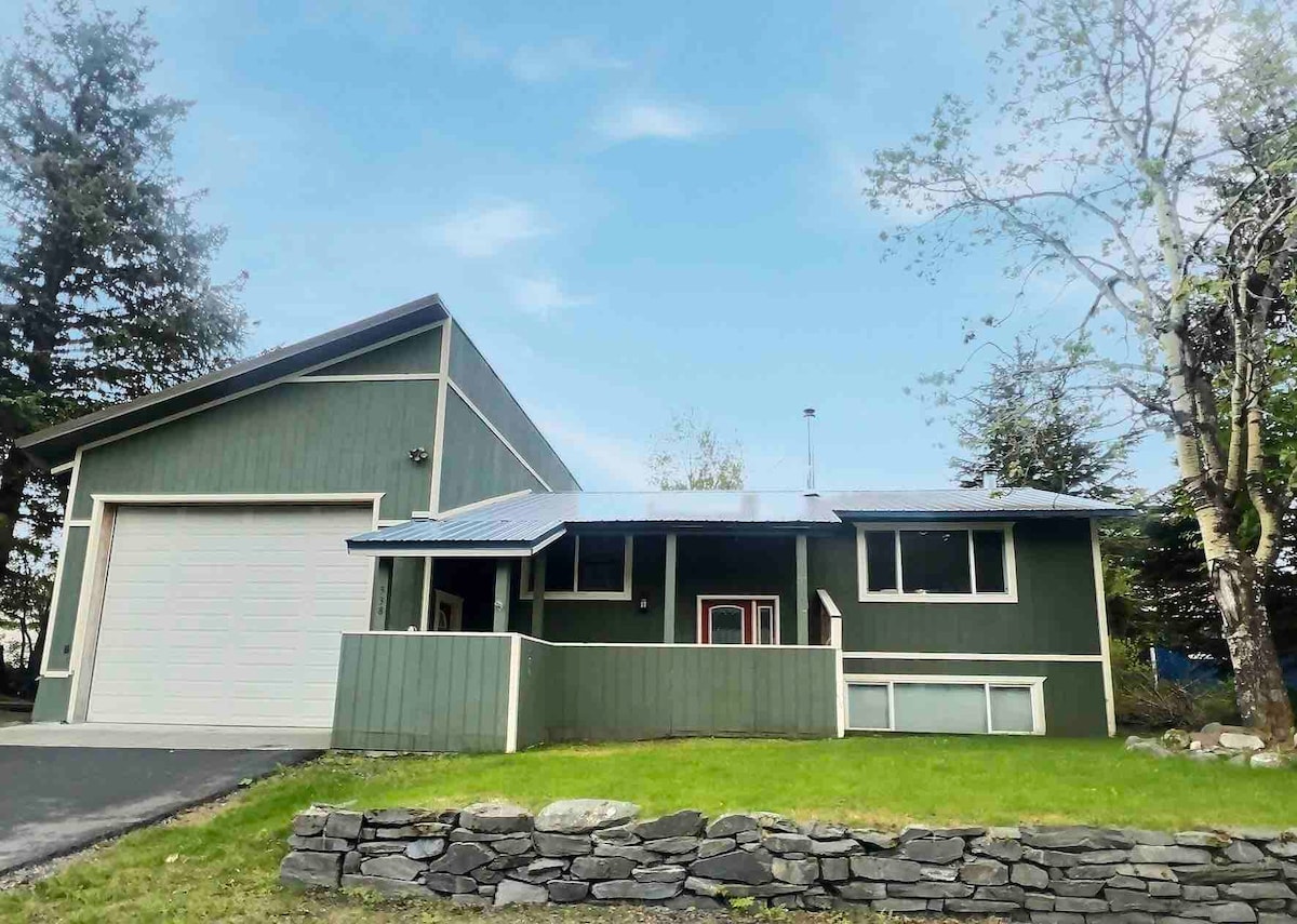 En este alojamiento se respira tranquilidad: ¡relájate con toda la familia! Hermosa cabaña enclavada en los árboles con magníficas vistas a las montañas, a 1/2 milla del acceso al río Kings y a 31 millas del parque del glaciar Matanuska. Nuestra cabaña se encuentra junto a la autopista North Glenn, a 62 millas de Anchorage, Alaska, y a 15 millas de Palmer, Alaska.