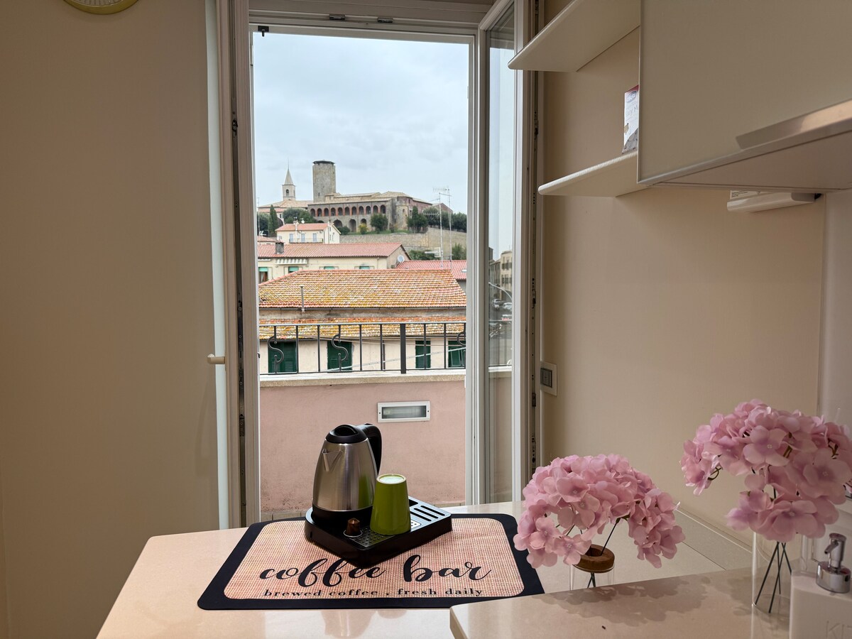 Luminoso apartamento de dos habitaciones con una romántica terraza panorámica para disfrutar del desayuno al sol, del aperitivo mientras se observa el vuelo de los vencejos y de la cena bajo las estrellas. La casa se encuentra en el segundo piso (sin ascensor) de un edificio antiguo con un patio característico en el centro histórico en una ubicación tranquila, pero cerca de todos los servicios. Cuenta con un dormitorio, baño con ducha, sala de estar con Smart-TV, sofá cama y cocina americana.