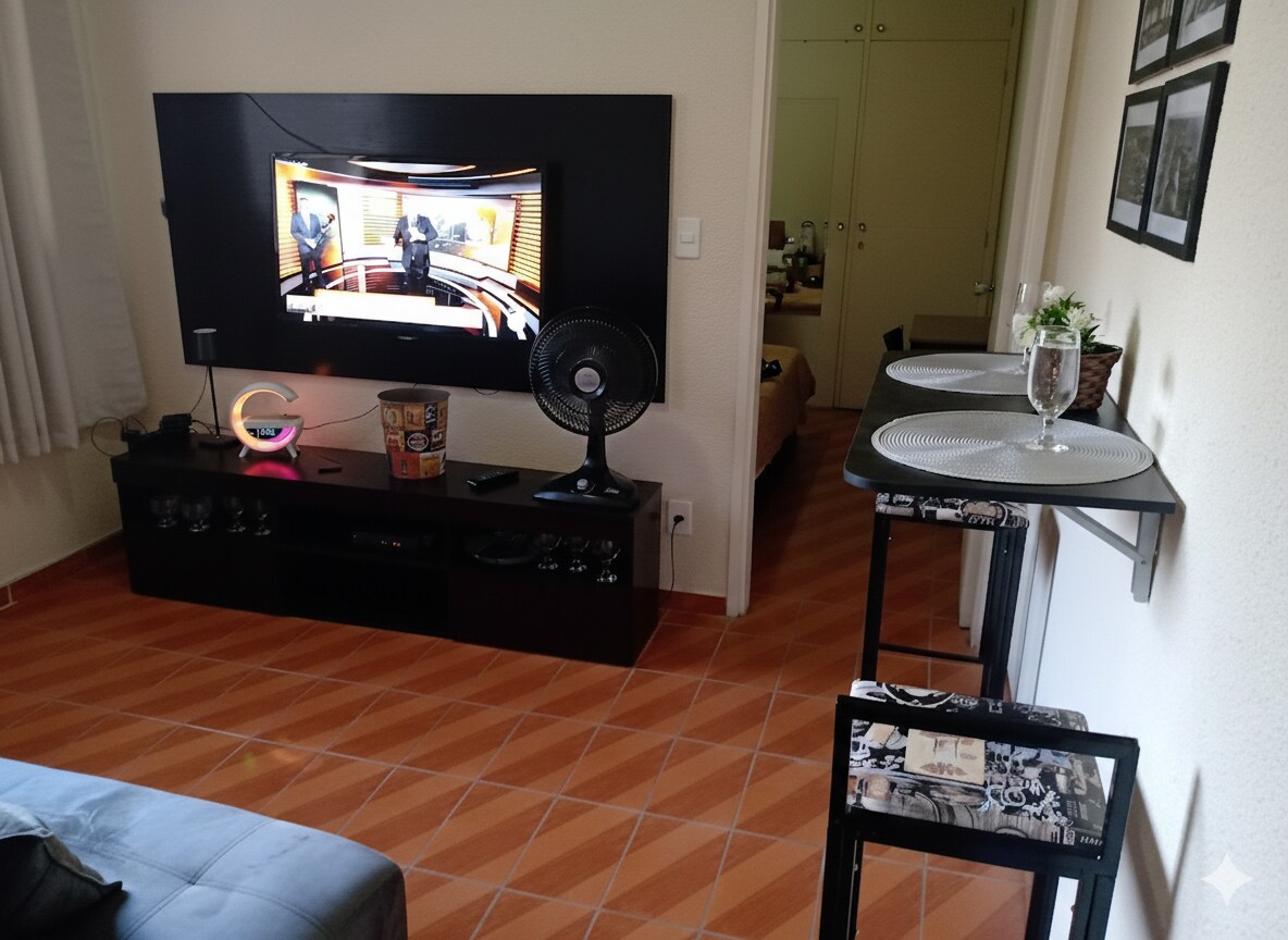 ¡LUJO Y CONFORT! Estudio ubicado en una calle residencial en el centro de Campinas, ¡tranquilidad sin renunciar a tenerlo todo cerca! ¡Nuestro estudio está hecho para 2 personas y cuenta con TV de 65'' en la sala y una TV de 43'' en el dormitorio! Cocina completa: cocina de inducción, licuadora, hervidor eléctrico, olla eléctrica, sandwichera, tostadora, cafetera automática. Cama súper cómoda y ofrecemos juego de cama y baño completo.