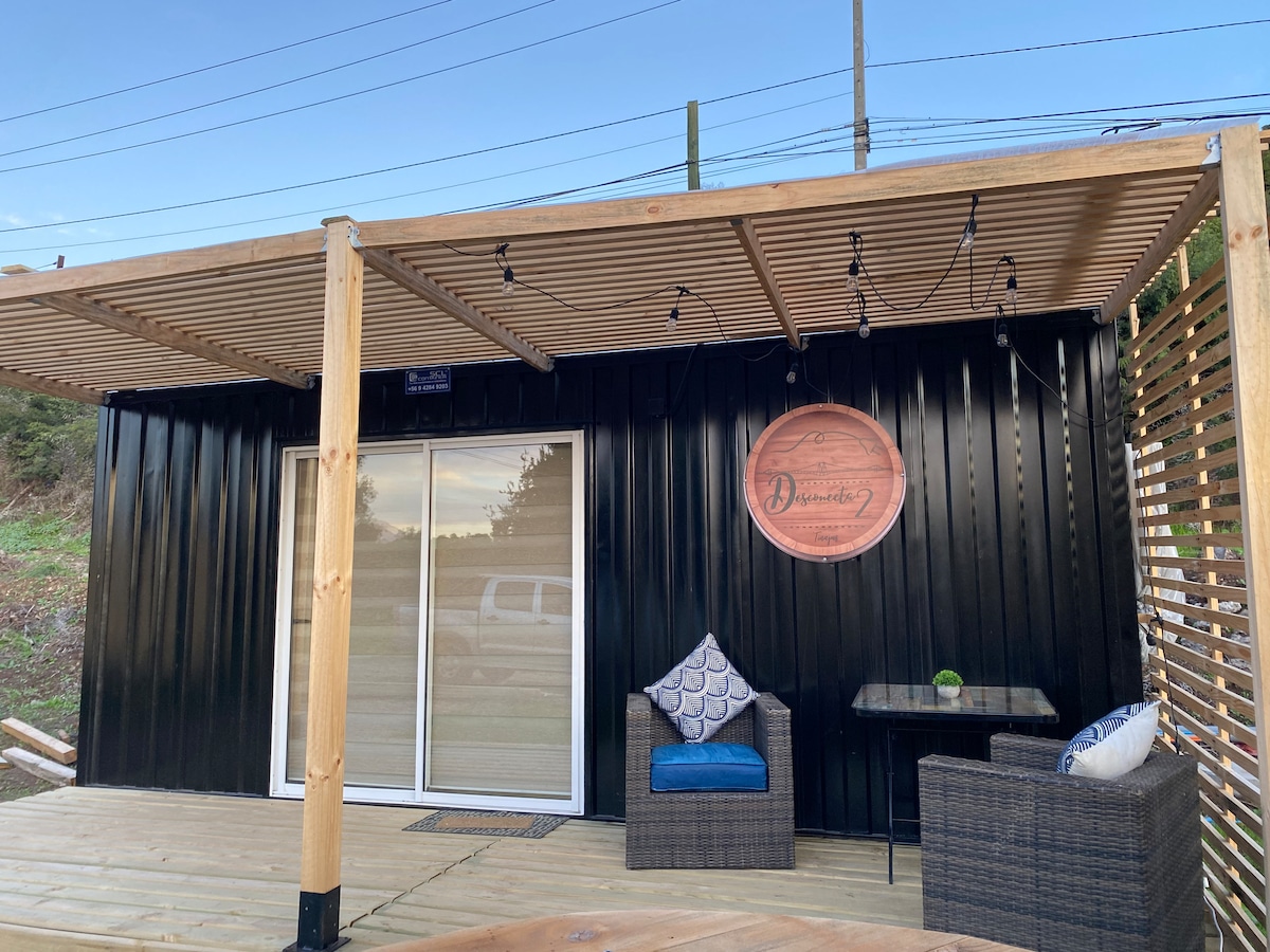 Ven a disfrutar de nuestra encantadora cabaña container en un entorno romántico rodeado de naturaleza. Nuestro espacio está diseñado pensando en una grata estadía. La cabaña tiene aislación térmica en base a poliuretano y en dormitorio ventanal termopanel, en la zona exterior posee una agradable terraza deck, una mini piscina, asadera, hamaca, ducha al aire libre y estacionamiento privado en el acceso. Todas estas instalaciones son de uso exclusivo de los huéspedes de la cabaña.