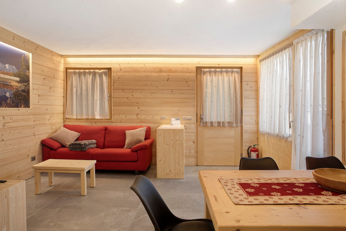 Appartamento appena ristrutturato situato in una posizione strategica tra il centro del paese e gli impianti di risalita. E' composto da due camere da letto, soggiorno con angolo cottura e bagno ed è dotato. Il condominio è dotato di ascensore. È disponibile un box doppio in via Rusca 27. E’ l'ultimo a sinistra al piano -1. In prossimità del box c’è una smart box con le chiavi.