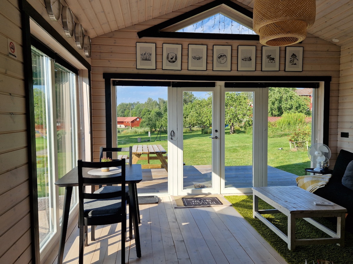 La cabaña ('härbre' en sueco) es una de las varias pequeñas dependencias en un entorno pintoresco. El edificio es del siglo XIX. La planta baja ha sido cuidadosamente renovada utilizando métodos tradicionales de conservación de edificios. Hay una pequeña cocina con agua fría, una nevera y una placa de cocción. El aseo exterior está a solo unos pasos. La ducha está en el edificio principal. El bosque está a la vuelta de la esquina con buenas oportunidades para paseos más cortos o más largos. Aparcamiento gratuito.