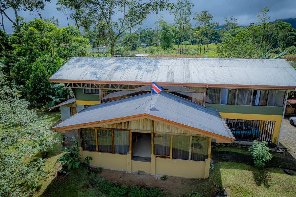 Escápate a nuestro espacioso y acogedor refugio, ideal para relajarte y desconectar. Esta casa se encuentra rodeada de naturaleza, en un entorno tranquilo y silencioso, perfecto para quienes buscan paz y serenidad. Al despertar, podrás disfrutar del canto de las aves y de impresionantes vistas al exterior desde los grandes ventanales que inundan de luz natural cada rincón. -A 1 h de La Fortuna. -A pocos minutos de cataratas y aguas termales. -Puedes visitar la laguna del Hule y Río Cuarto.