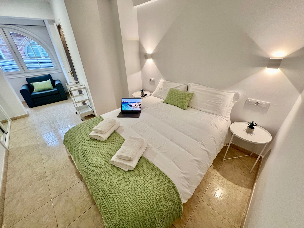 Estudio para 2 personas. Céntrico. Consta de 1 dormitorio con TV y dos camas de 90, 1 baño y una pequeña cocina. Le ofrecemos limpieza y cambio de sábanas semanal y cambio de toallas 2 veces por semana (para estancias de más de 1 noche).