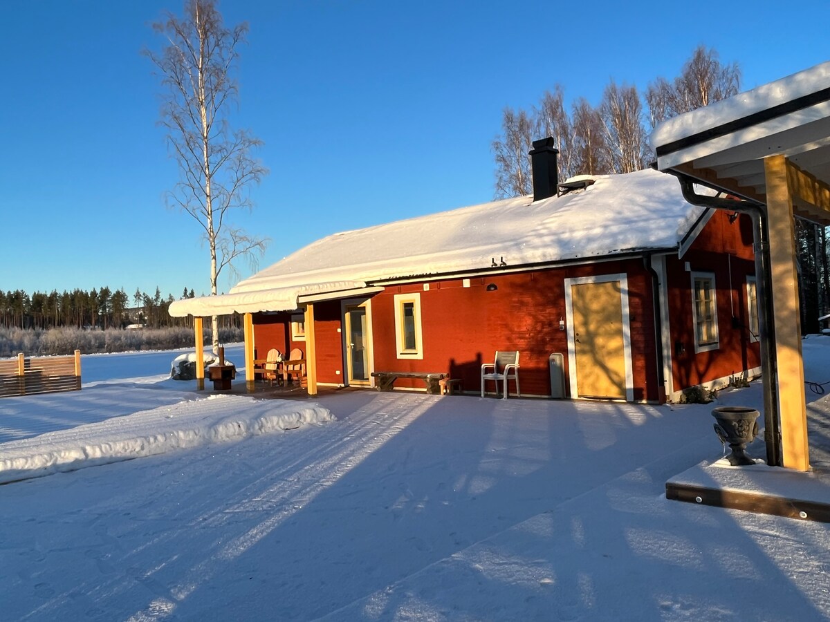 Vida de calidad en un lugar tranquilo con muchas oportunidades en invierno como slalom, cross-countryskiing, patinaje o tomar un baño de sauna. En verano puedes utilizar el bote de remos para pescar, darte un baño desde el pontón privado hasta el lago o relajarte en la terraza o el invernadero. Lugar perfecto para familiares y amigos. Una gran cocina moderna y una sala de estar con mucho espacio. La casa está cerca de Järvsö, el Bike Park y Järvzoo.