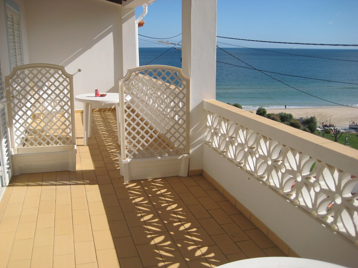 Apartamento junto al mar en una ubicación privilegiada en la planta baja, terraza cubierta con vistas al mar y terraza con jardín en el pequeño pueblo pesquero de Salema en el Algarve para 2 personas. Dormitorio adicional (cama matrimonial) + baño/inodoro en el primer piso a través de escaleras exteriores, disponible para 2 personas más € 43.00 - € 55.00 (julio, agosto) p.N. Accederás a la gran terraza con separación visual por apartamento a través de una escalera al aire libre y a la terraza del jardín con ducha, sillones y mesa.