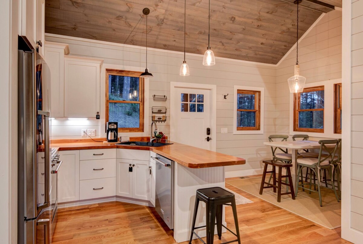 El Alpine A es una estructura alimentada por energía solar en un tejado a dos aguas, construida por Gary del programa Mountain Men en History Channel. Una terraza con chimenea de gas, parrilla pequeña y un par de sillas plegables. En el interior hay una pequeña sala de estar, cocina americana, aseo, cuarto de ducha, cama tamaño queen, cama tamaño twin en el loft, el sofá es un futón cama. Si alguna vez te has preguntado cómo es una casa pequeña, ¡ahora es tu oportunidad de experimentarlo en el Alpine A! Estamos a menos de 7 minutos de Boone.