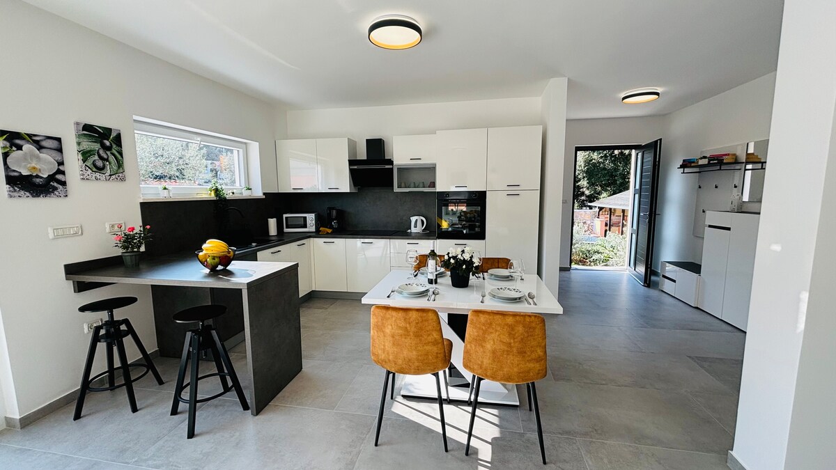 ¡Joya moderna y luminosa con jardín para barbacoas familiares!