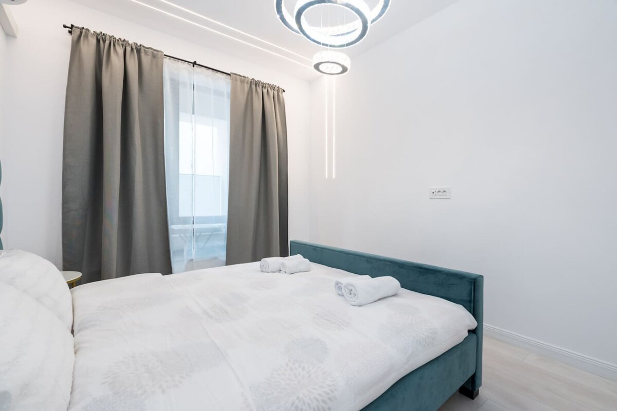 Apartamento prémium de dos dormitorios (70 m² + balcón) en un nuevo edificio de lujo en Pipera, el centro de negocios de Bucarest. Diseño personalizado, aire acondicionado en todas las habitaciones, wifi de alta velocidad, Smart TV, lavavajillas, lavadora y espacio de trabajo dedicado. Ideal para estadías cortas y largas. En el complejo administramos varios apartamentos. IMPORTANTE: Acceso al aparcamiento mediante reconocimiento de matrícula. Por favor, indique su número de matrícula antes de realizar el registro de entrada. Consulta las normas de la casa para obtener más información.