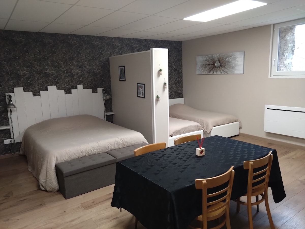 Este alojamiento tranquilo ofrece una estancia relajante para toda la familia. Apartamento tipo estudio situado en el primer piso al que se accede por una escalera de caracol. Entrada a la planta baja por una habitación con lavadora y equipo de mantenimiento. Cocina abierta, zona de comedor y zona de estar. Zona de noche compuesta por una cama de 160x200 y dos camas de 90x190. Cuarto de baño, inodoro independiente. Preau con mesa y 4 sillas. Posibilidad de tener toallas de baño de pago, se solicita en el momento de la reserva.