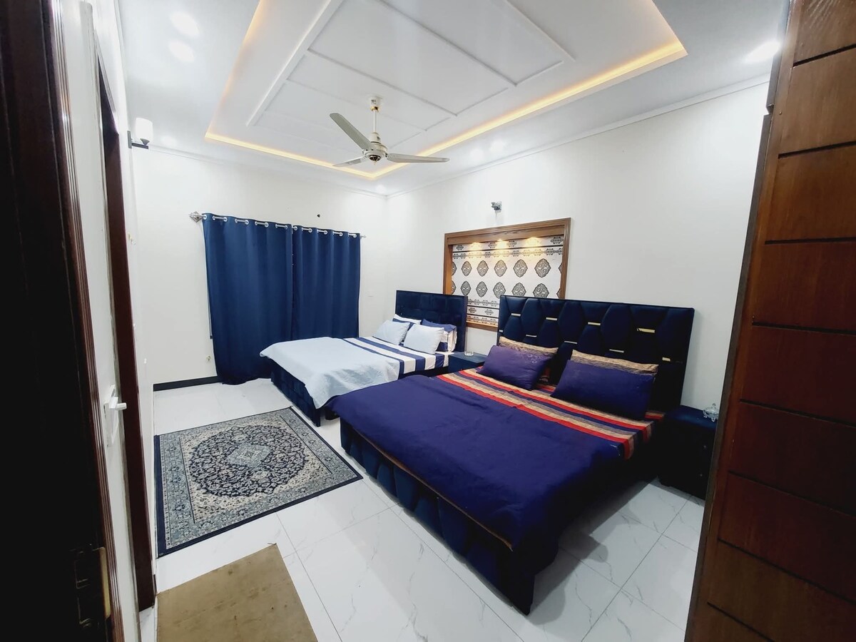 Casa espaciosa, moderna, elegante y de nueva construcción. 3 dormitorios, 4 baños, cocina, lavandería, sala de estar, etc. Perfecto para parejas, familias o incluso profesionales de negocios, que ofrece todo lo que necesitas para una estancia relajante, memorable y agradable. A solo 10 minutos del Aeropuerto Internacional de Islamabad. Extremadamente cerca de las autopistas Lahore/Islamabad/Peshawar. Ya sea que estés explorando las maravillas de las Áreas del Norte o necesitando una escala relajante antes de tu próximo vuelo, te encantará.