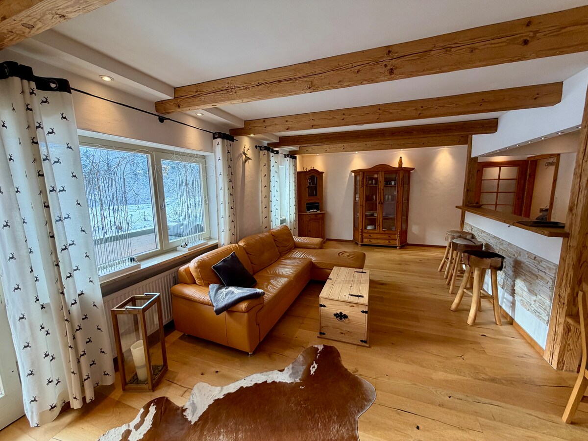 Apartamento en una casa pintoresca y antigua de más de 100 años. Ubicación única entre Loferbach y la montaña en un lugar aislado y, sin embargo, a solo 3-5 minutos a pie del centro de la ciudad y el telesilla. A 120 m de la casa se encuentra la cascada de Lofer, un sueño relajado con el sonido del arroyo de fondo... El apartamento tiene un balcón orientado al sur y una gran terraza orientada al oeste con vistas a Steinberge, que te invita a relajarte, una chimenea hace que dormir en la cama con dosel sea particularmente acogedor.