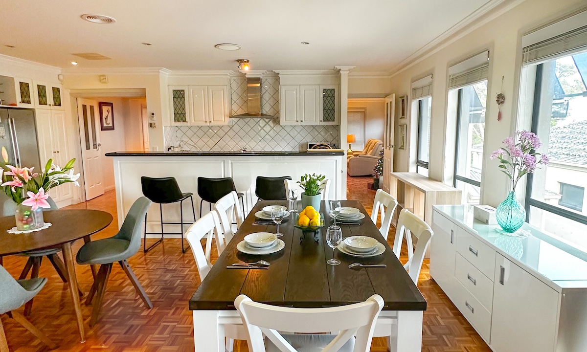 Te ofrecemos la oportunidad de alojarte en nuestro apartamento totalmente equipado, privado y construido a propósito en la parte trasera de nuestra casa. Adecuado para 4 adultos, 1 niño y 1 bebé. En el pueblo costero de Queenscliff, a solo 1,5 horas de Melbourne, con fácil acceso a la Great Ocean Road. Tu bañera de hidromasaje, situada en la privacidad del jardín trasero y la puesta de sol desde el sendero adyacente. Fácil acceso a pie al puerto, tiendas/restaurantes locales, Blues Train y la playa. Camas cómodas, ropa de cama de calidad y desayuno continental, todo incluido.