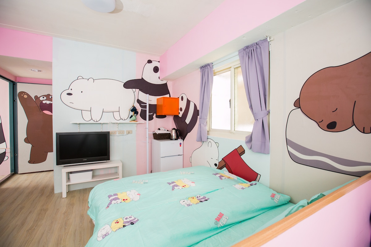 Ximending 1F/Estación de metro a 5 minutos/Un dormitorio y un salón/2+1P/wifi/yt