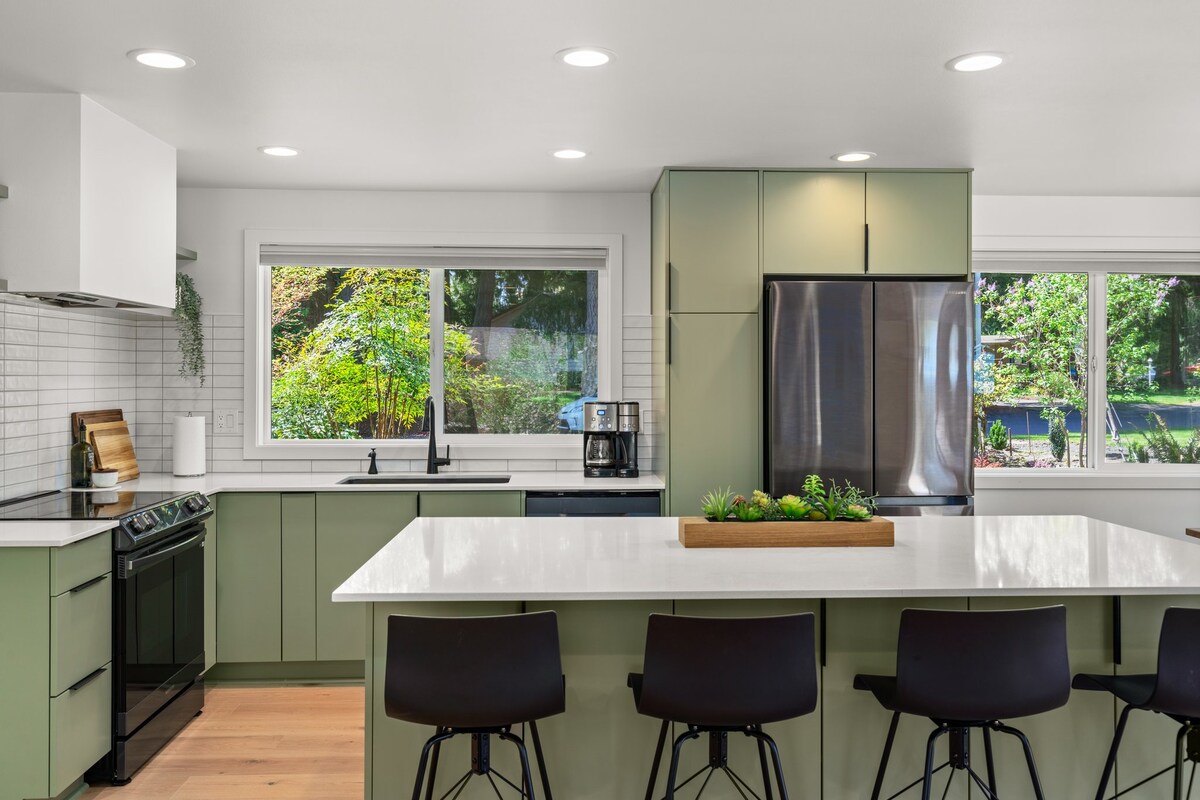 No se permiten animales/mascotas. Ubicado en la ciudad, a 4 minutos en auto del centro de Olympia, esta es una base de casas muy popular para explorar el noroeste del Pacífico, o si estás en la ciudad por motivos de trabajo. Muy cerca del Edificio Capital, las oficinas estatales, el centro de la ciudad y todas las comodidades. Remodelada en 2019, hay una cocina completa con muchas opciones de desayuno y aperitivos. El extenso baño tiene pisos climatizados, una ducha de 5 pies y una lavadora-secadora de tamaño completo Samsung.
