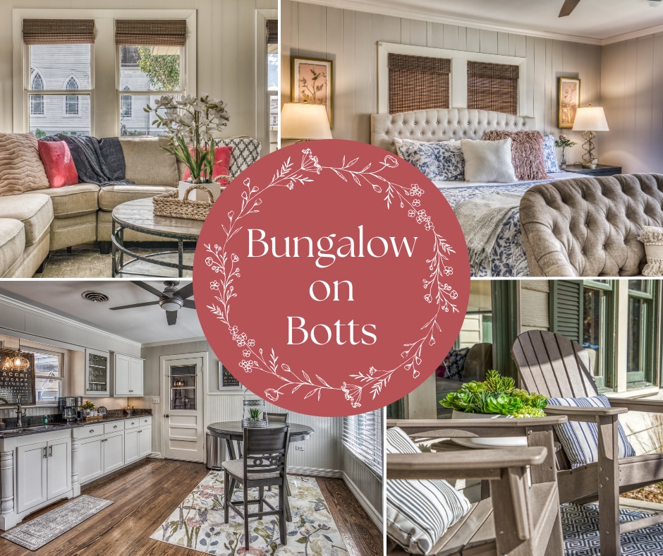 Myona on Alamo, sister property to Eva on Alamo, is a 1920's restored bungalow where historm charm meets modern luxury. Just a 5-min walk to Downtown Brenham makes easy access to bars, eateries, and shops. Enjoy two spacious King bedrooms, a bright living area, fully stocked Kitchen, and inviting front + side porches. Unwind on the back patio with a gas firepit and glass of wine in the evenings. Optional concierge services: Grocery Services Photo booth rentals Anniversary & birthday gifts