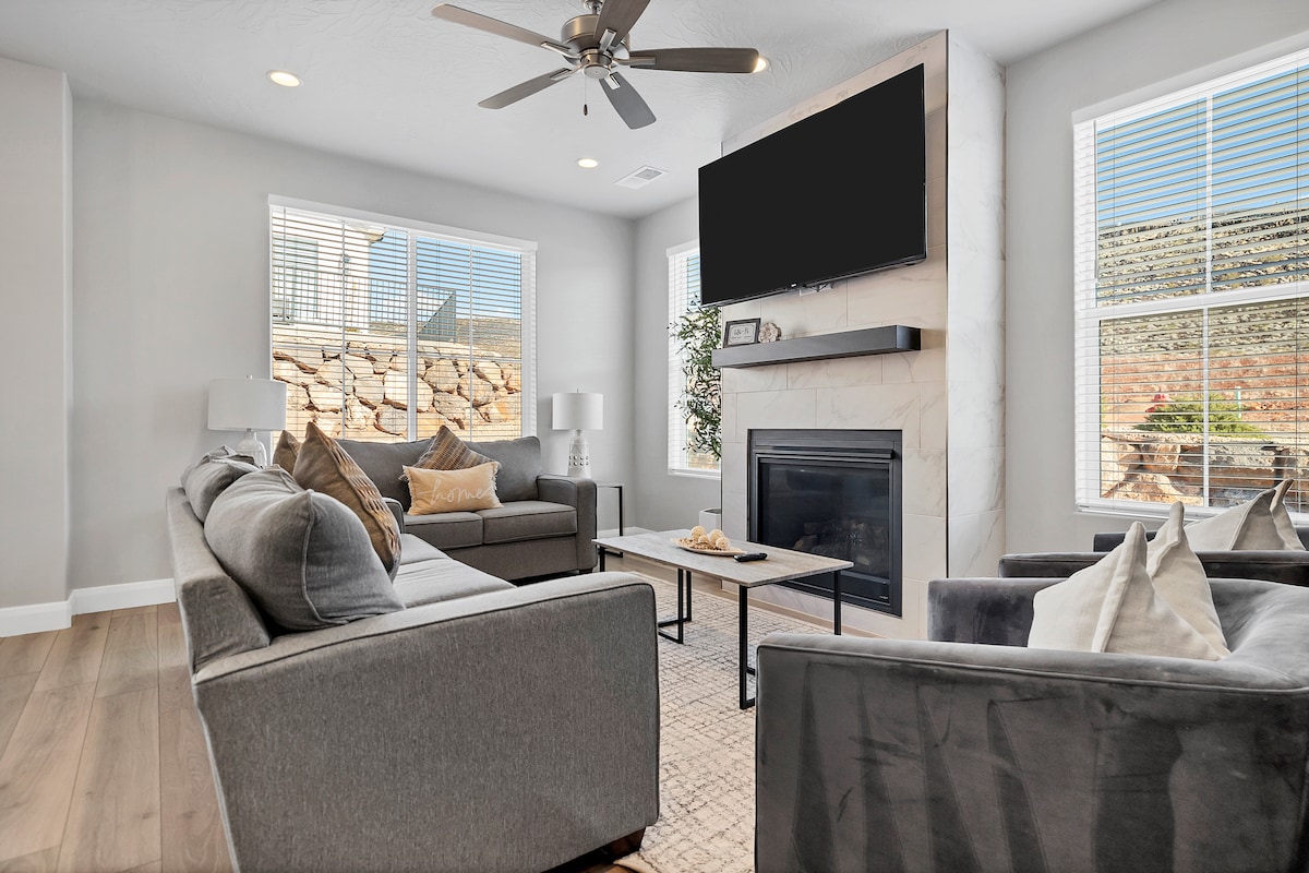 ✔️ SIN TAREAS Wifi ✔️ gratis ✔️ Capacidad para más de 16 huéspedes Jacuzzi ✔️ privado en la azotea con unas vistas impresionantes Amplia comunidad de centros✔️ vacacionales con piscina, jacuzzi, chapoteadero y canchas de pickleball. Cocina ✔️ totalmente equipada con electrodomésticos de acero inoxidable. ✔️ Dos salas de estar para mayor relajación y espacio de entretenimiento. ✔️ Cómodo estacionamiento de remolques para barcos o rastreadores de arena. A ✔️ solo 30 minutos del Parque Nacional Zion.